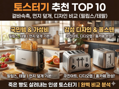토스터기 추천 TOP 10|겉바속촉, 먼지 덮개, 디자인 비교 (필립스/테팔)